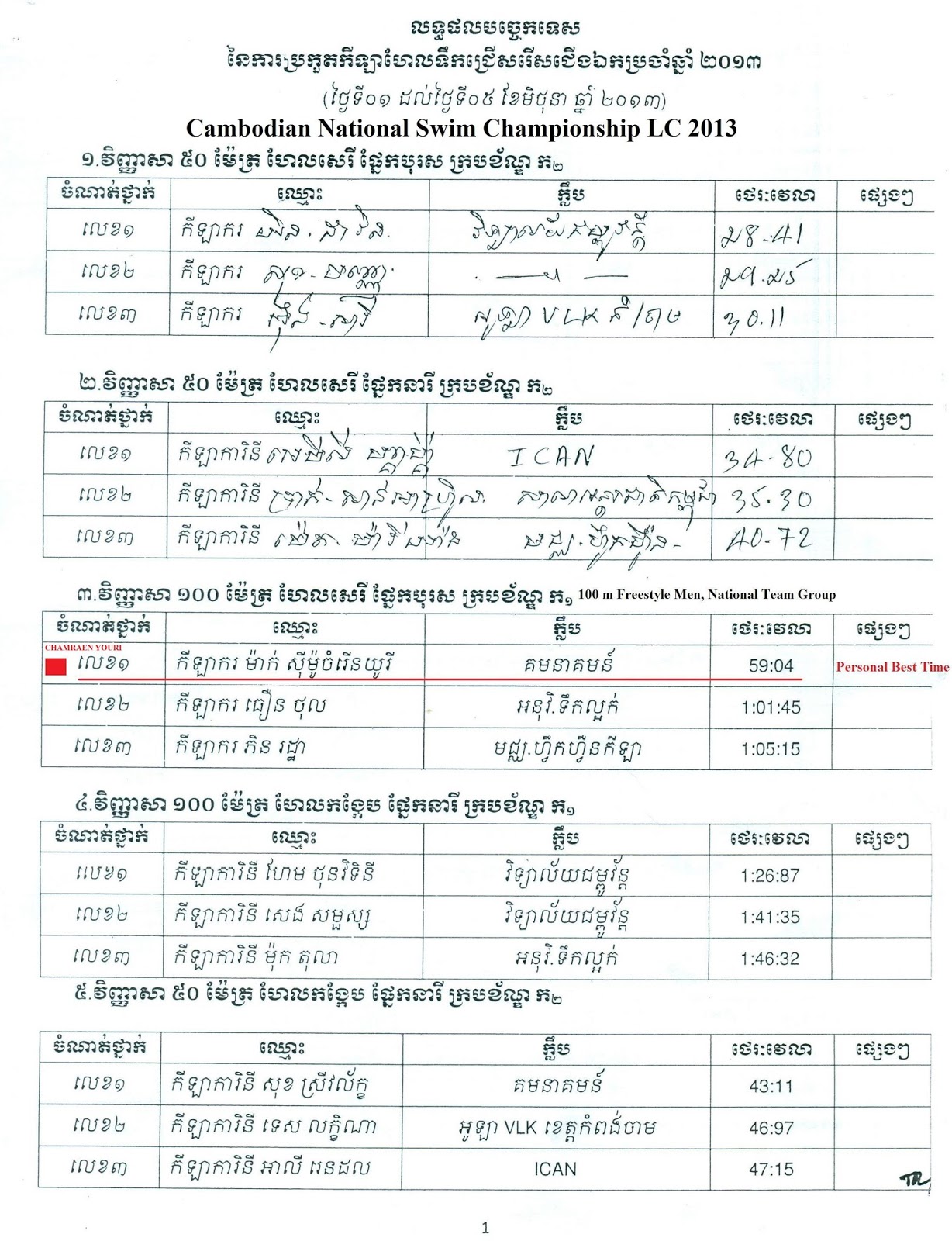 Aquatics Cambodia Cambodian National Swimming Championship Long Course