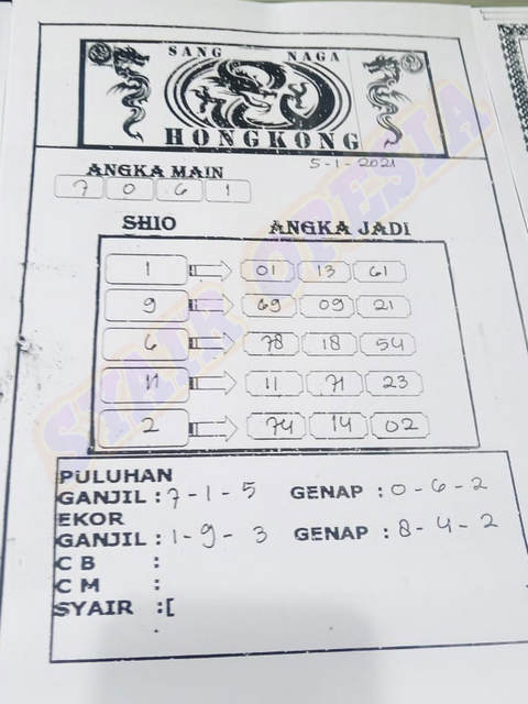 Syair HK Selasa 5 Januari 2021 Royal Syair